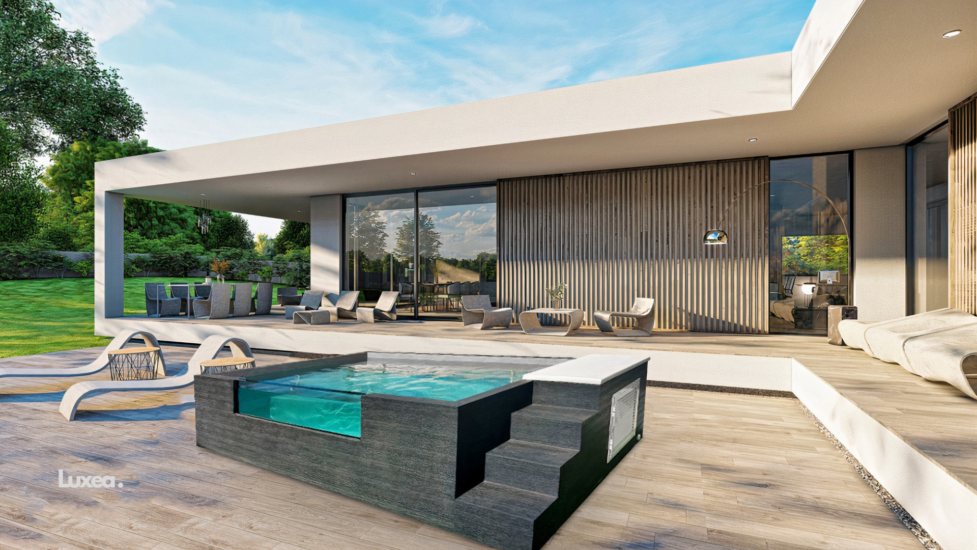 Ces parois offrent une expérience visuelle unique, permettant aux baigneurs de se sentir connectés à leur environnement tout en profitant du confort et des options proposées, comme les buses SPA ou la nage contre-courant.